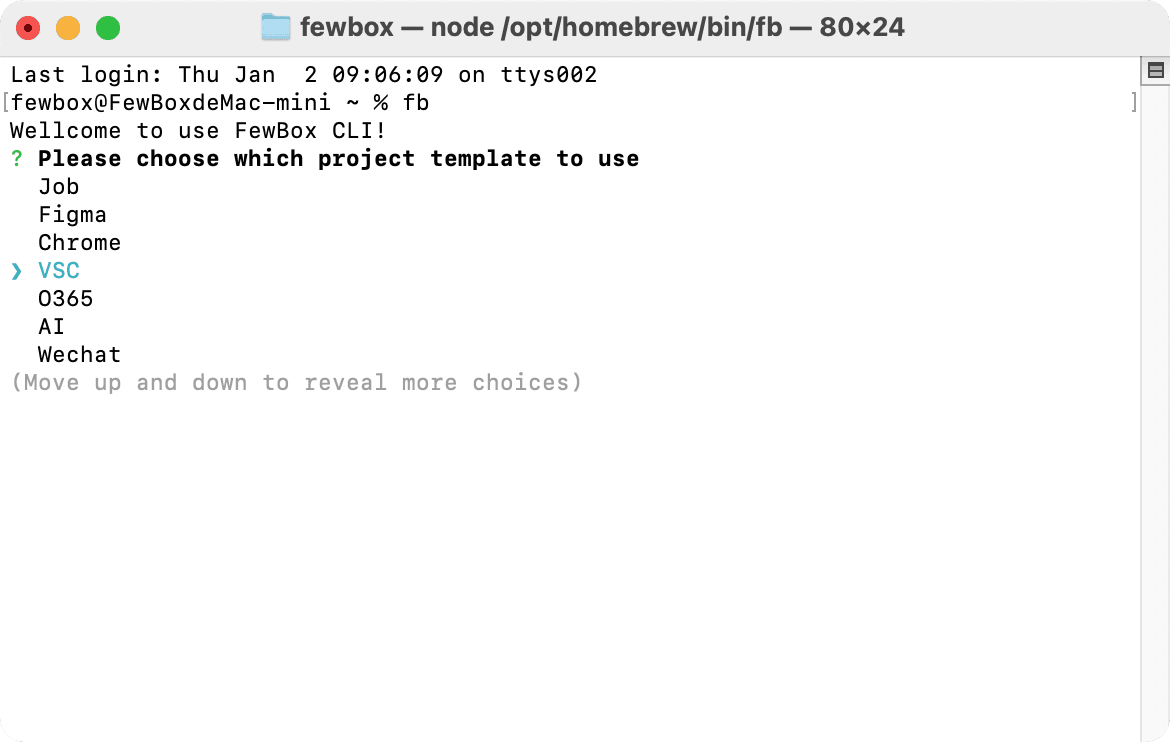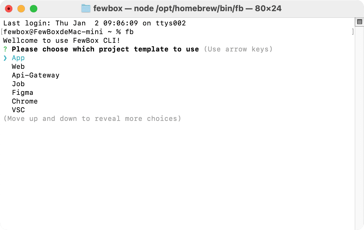 2#键盘山下键选择模版类型,包含App,Web,Gateway,Figma Plugin,Chrom Extension,VSC Extension,Job等